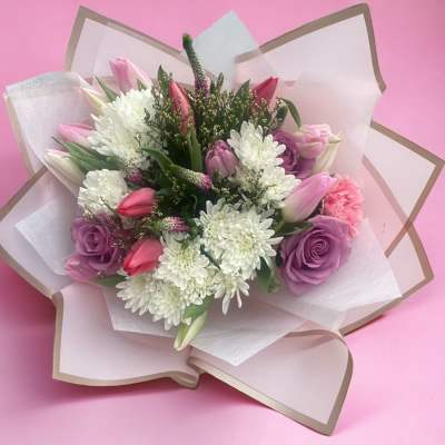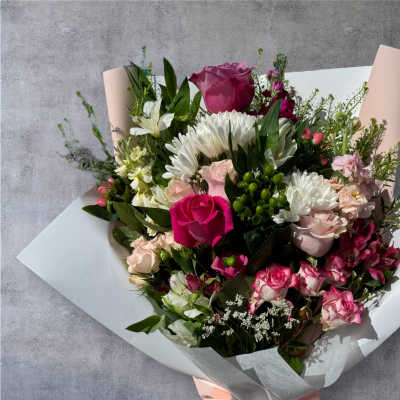 Each flower bouquet is unique and cannot be replicate exactly the same. If you have a specific theme, styles you like, please include in florist instructions at checkout. You can also choose the color of wrapping paper to match the theme, favorite color, etc... Thank you!