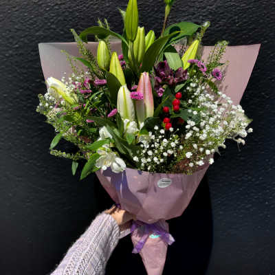 Each flower bouquet is unique and cannot be replicate exactly the same. If you have a specific theme, styles you like, please include in florist instructions at checkout. You can also choose the color of wrapping paper to match the theme, favorite color, etc... Thank you!